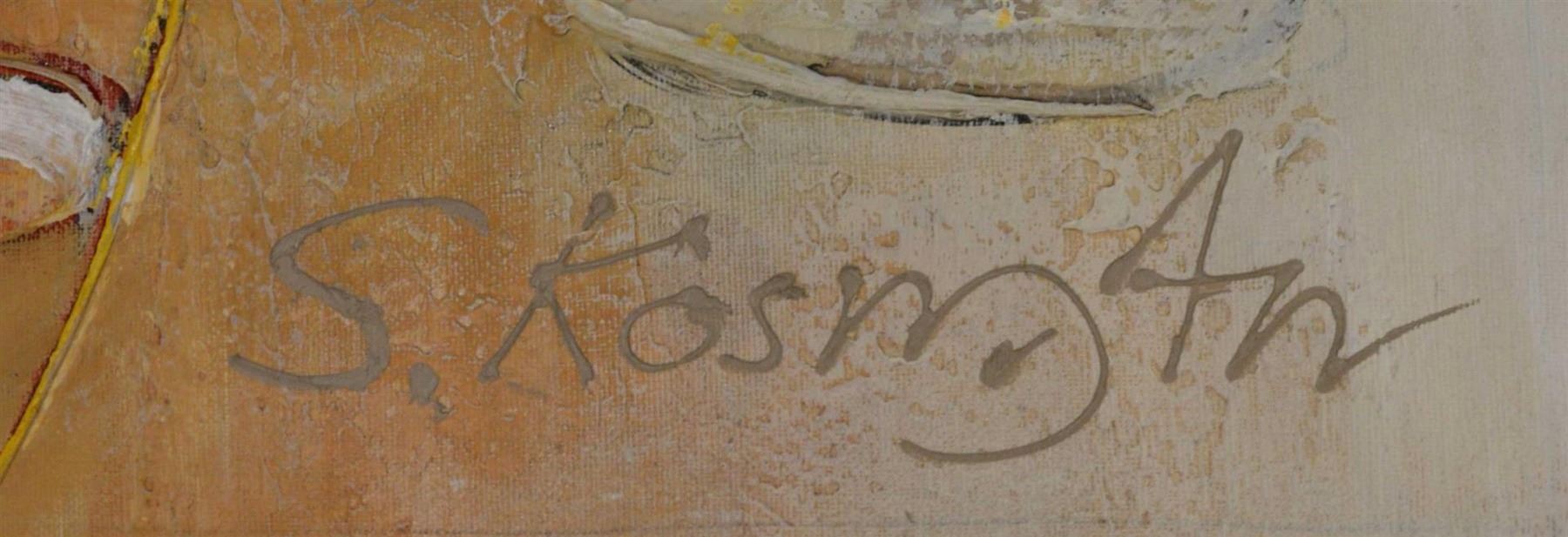 Artist: Shaul Kosman - Title: Untitled - Medium: Original Acrylic on Canvas - Signature: This one-of-a-kind work is hand-signed by the artist at the bottom of the image - Image Size: Approximately 24 inches x 48 inches - Unframed on Unstretched Canvas - Details: This work comes with a Certificate of Authenticity - Biography: Shaul Kosman was born in Lithuania in Kaunas, in 1959. - Musician, architect and artist are the three facets of Shaul's talented and creative personality. He was raised in the atmosphere of classic European architecture in Baltic. Since childhood he played jazz and painted. Probably this is why the main themes and idea of his paintings is a combination and connection between music and architecture. - After immigrating to Israel in 1997, the love for classic shapes and jazz music transferred into a deep understanding of the pulse of the modern city. His paintings are a rich combination of acrylic and oil paint layered and textured using tools, spoons and other utensils. His expansive use of vibrant and brilliant colors enhances the content of his work and draws the viewer into his world.