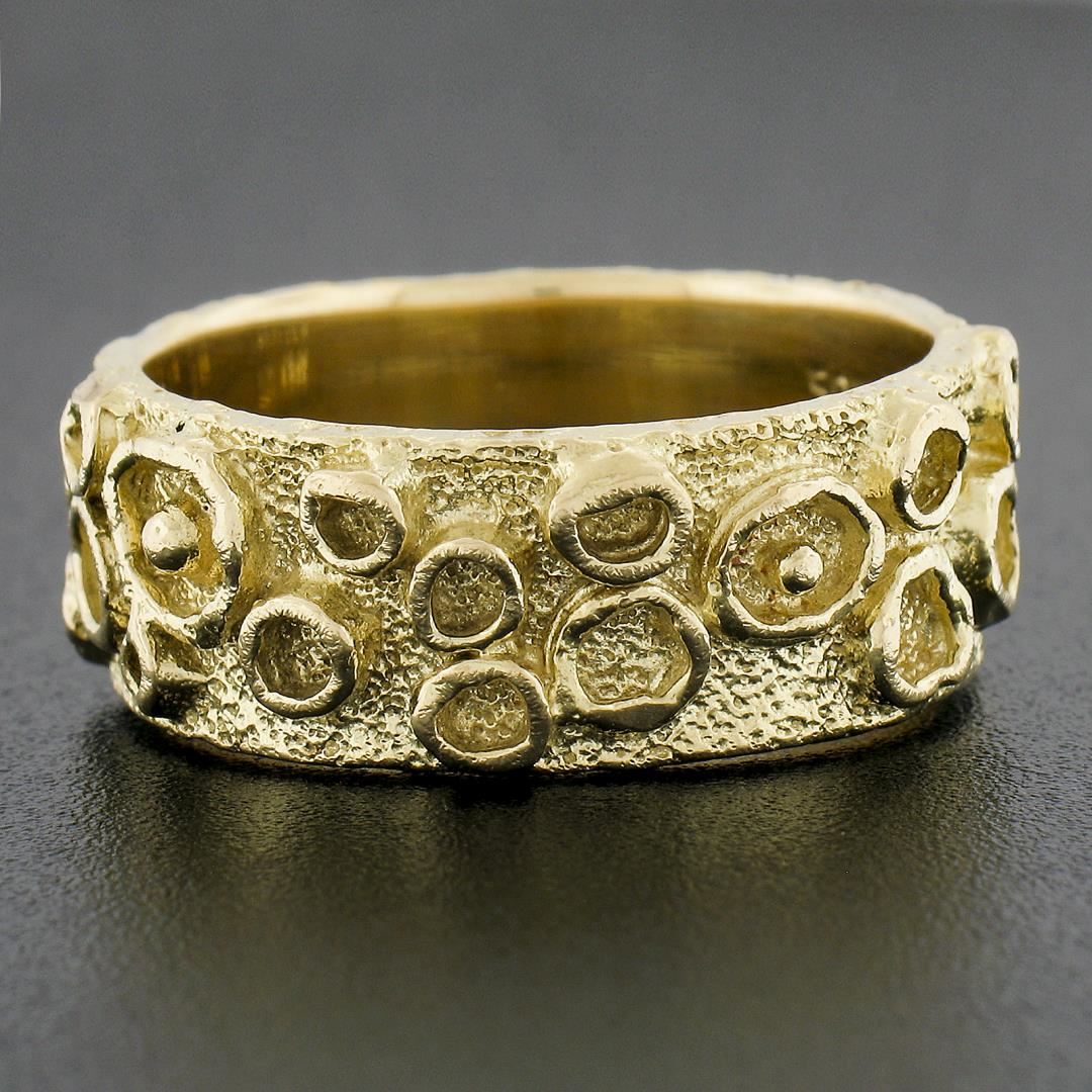 a solid 18k yellow gold band by Schluep. The ring is size 10.5, weighs a total of 14.63 grams, and measures 9.1mm wide.
