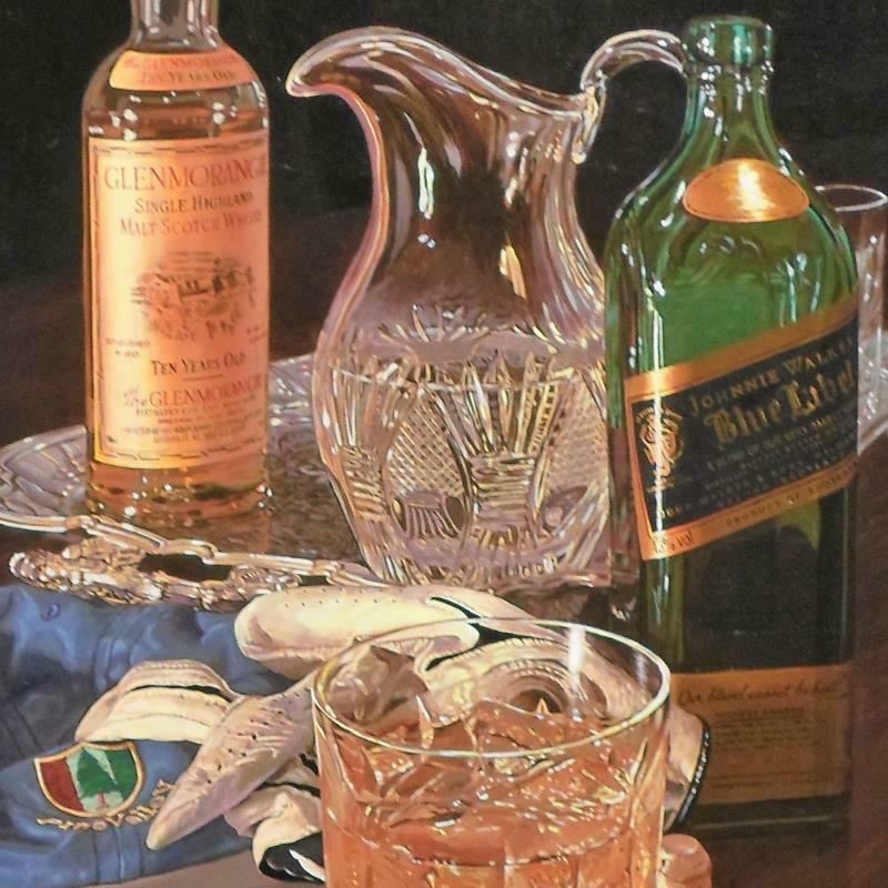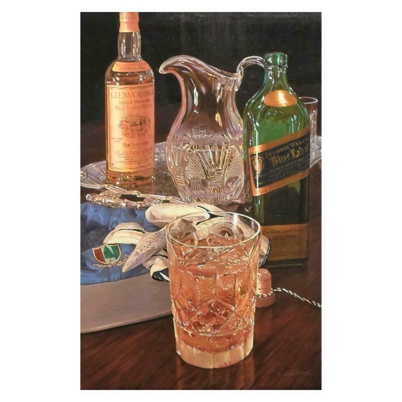 "Scotch On The Rocks" is a numbered limited edition giclee on canvas by Nobu Hairara. It comes bearing the artist's authorized signature and with a Certificate of Authenticity. Measures approximately 36"x24" (image).