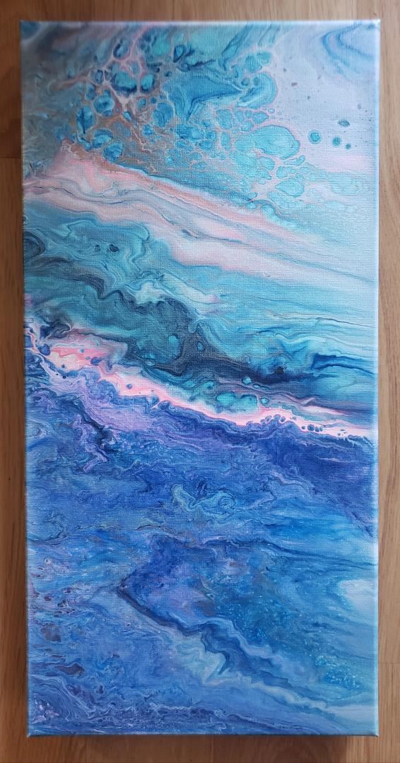 A 20x10" original acrylic on stretched canvas. Says artist Katie D. : "The Ocean has an ability to breath life into me.A wave retreats, leaving gentle seafoam on my feet." w/COA