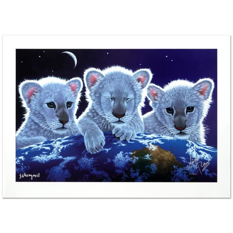 "Secret, Mystery & Hope" is a limited edition giclee on paper by William Schimmel, US numbered and hand signed by both the artist and the legendary magician duo, Siegfried and Roy (1944-2020). Includes Certificate of Authenticity. Measures approx. 41" x 29.5" (with border), 36" x 24" (image). ** Please note: there are slight creases on the face of the image. **