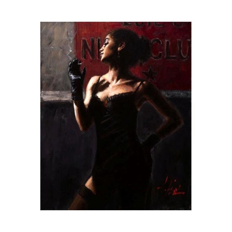 "Sensual Tch In/DarkII" is a hand textured limited edition giclee on canvas board by Fabian Perez. The piece is numbered and hand signed. Includes a certificate of authenticity. Measures approximately 16.5" x 12.5"