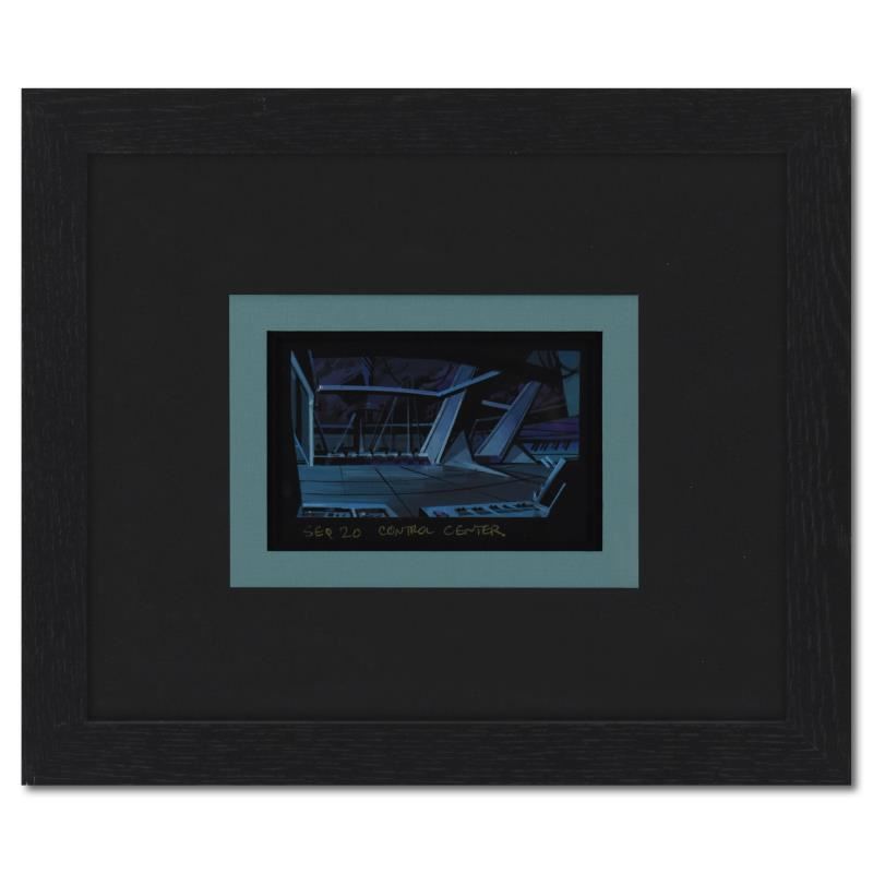 "Seq 20 Control Center" is an original story board production painting on paper from the Marvel animated series Avengers: Earth's Mightiest Heroes. This piece comes framed and includes Letter of Authenticity. Measures approx. 12.5" x 10.5" (frame), 5" x 4" (image).