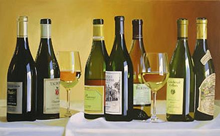 Thomas Stiltz collection of terrific California White wines. A 20x32" signed limited edition stretched giclee on canvas. COA.