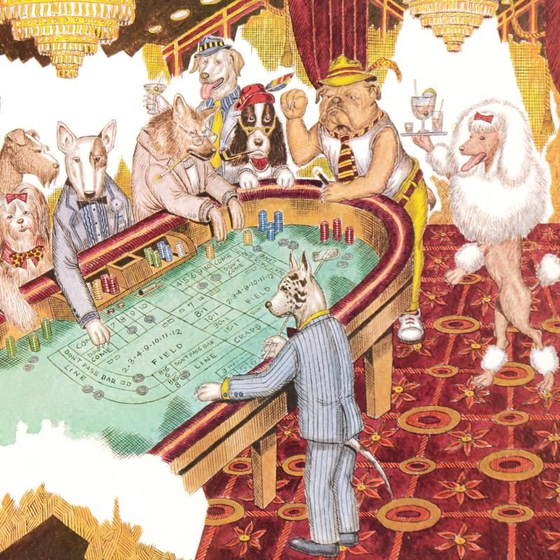 "Seven Come Eleven" is a limited edition lithograph on paper by George Crionas (1925-2004), numbered and hand signed by the artist. Includes Letter of Authenticity. Measures approx. 30" x 23" (border), 27" x 19" (image).