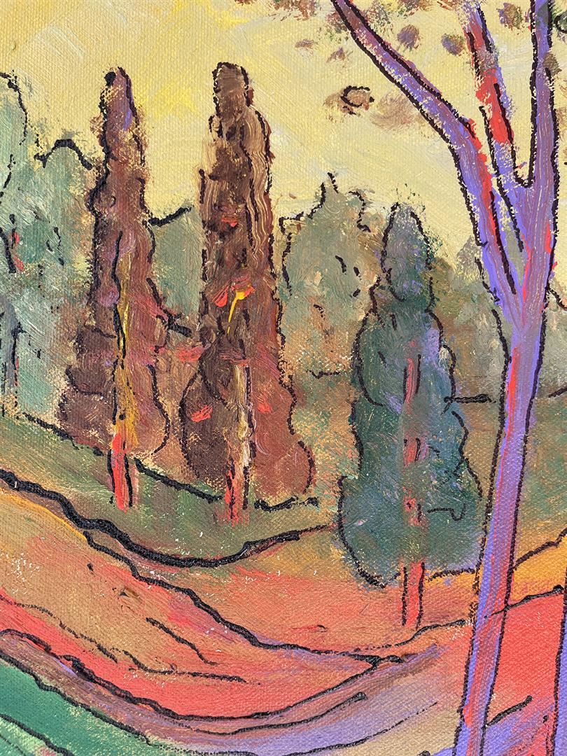 Brilliant original acrylic on canvas. Hand signed by Artist. This artwork comes framed ready to hang. Art size 12x16 inches. Frame size 18x22.