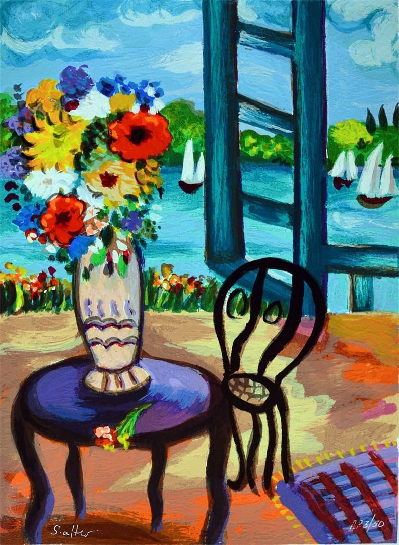 Artist: Shlomo Alter - Title: Flower Vase - Medium: Serigraph on Fine Art Paper - Signature: Hand-signed by the Artist - Limited Edition: AP 50 - Paper Size: Approximately 14 inches x 10.5 inches - Unframed - Details: This work comes with a Certificate of Authenticity - Biography: Shlomo Alter was born in Romania to a family of restaurateurs. He emigrated to Israel in 1948 and during high school he started to study painting under the well known artist Aaron Avni. Some of his early works appeared in UNICEF'S world touring exhibition of young artists. Altar's works are influenced by his early recollections of the well dressed people who gathered in the courtyard of his parent's restaurant in Bucharest to eat and drink, to dance of Gypsy bands, and to enjoy the convivial atmosphere. With a touch of optimism and good humor Alter's art reflects life at its core, an antithesis to the Nazi regime that shattered his childhood happiness. His paintings are like stage set on which the objects relate to each other through a glow of colors and lines - a frozen moment in time, a dynamic stillness prior to a burst of action. His style can best be compared to that of the Expressionists. He uses color to give direct expression to his ideas in influence by the famous, particularly Matisse and Duty.