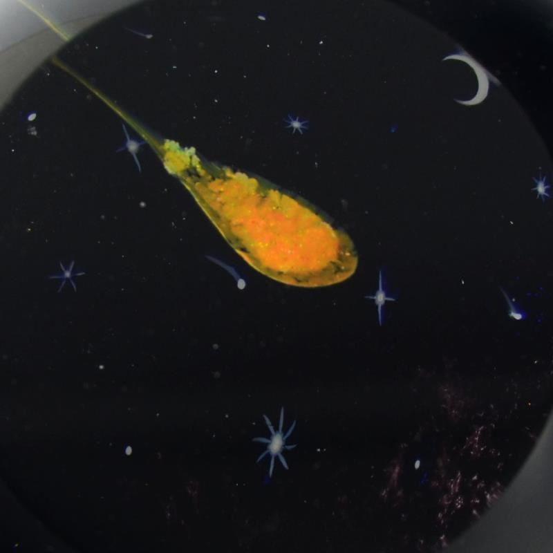 "Shooting Star" is a hand blown glass paperweight (second) from Glass Eye Studios. This piece contains ash from the 1980 volcanic eruption of Mount St. Helens. As each piece is individually handcrafted, the pattern in the glass may vary slightly from the image shown. "Second" means very slightly imperfect, but still great quality. Measures approx. 3" x 3" x 3".