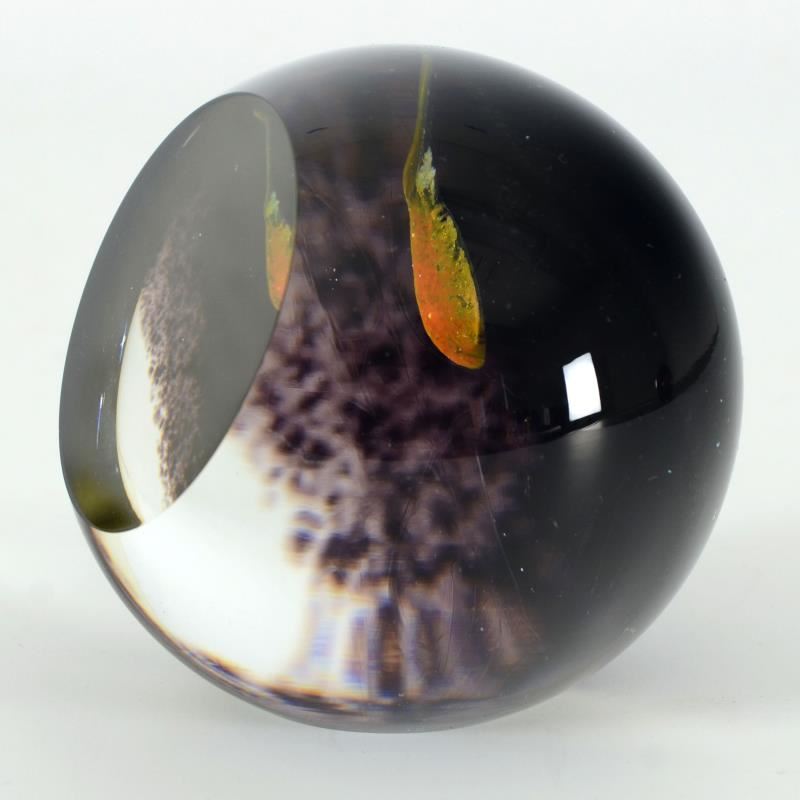 "Shooting Star" is a hand blown glass paperweight (second) from Glass Eye Studios. This piece contains ash from the 1980 volcanic eruption of Mount St. Helens. As each piece is individually handcrafted, the pattern in the glass may vary slightly from the image shown. "Second" means very slightly imperfect, but still great quality. Measures approx. 3" x 3" x 3".