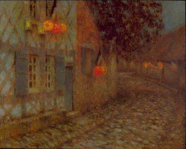 Artist: Henri Eugene Augustin Le Sidaner - Title: 14 July - Medium: Fine Art Reproduction Giclee on Canvas - Image Size: Approximately 15.75 inches x 20 inches - Unframed on Unstretched Canvas - Biography: Henri Eugene Augustin Le Sidaner (7 August 1862 - 14 July 1939) who was a contemporary of the Post-impressionists, was an intimist painter known for his paintings of domestic interiors and quiet street scenes. His style contained elements of impressionism with the influences of edouard Manet, Monet and of the Pointillists discernible in his work. Le Sidaner favoured a subdued use of colour, preferring nuanced greys and opals applied with uneven, dappled brushstrokes to create atmosphere and mysticism. A skilled nocturne painter he travelled widely throughout France and Europe before settling at Gerberoy in the Picardy countryside from where he painted for over thirty years.