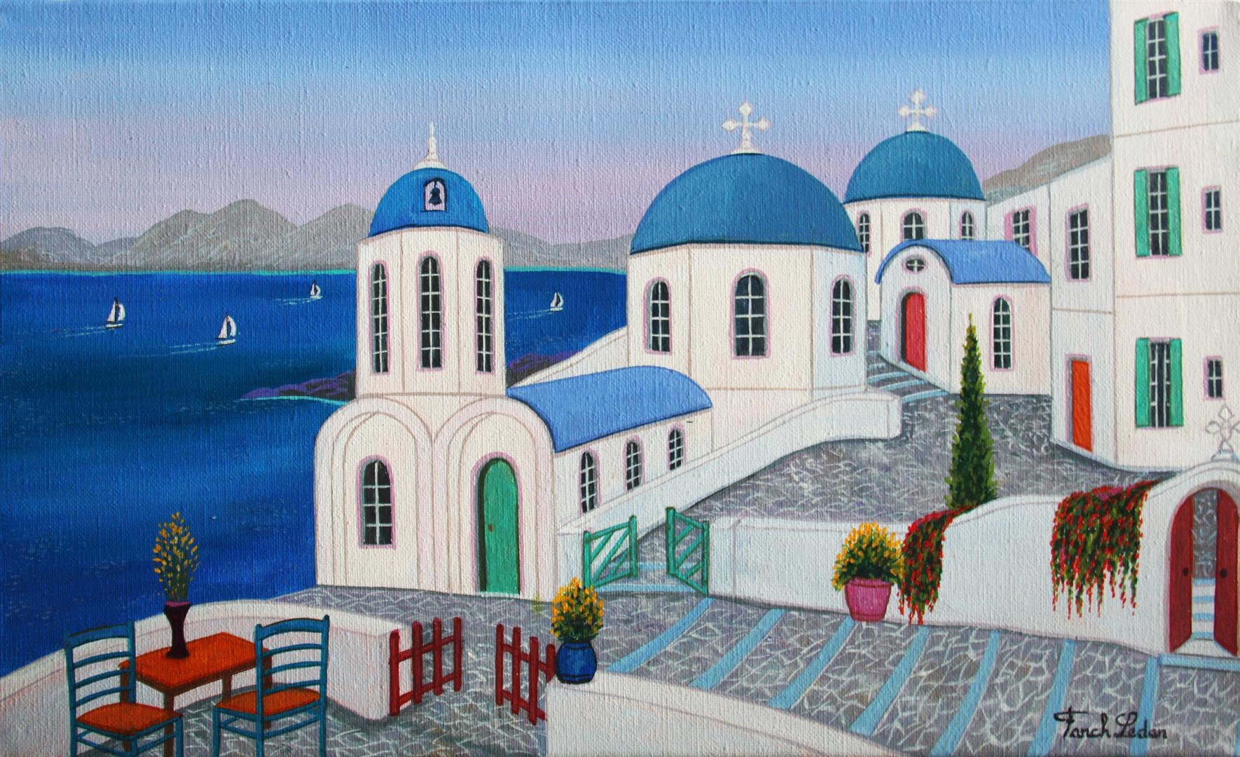 An Original acrylic by Fanch Ledan, on canvas, 10.75x18" this beautifully composed European scene is stretched but unframed, COA by the Artist,