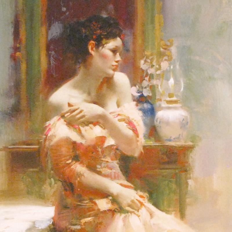 "Silk Taffeta" is a limited edition giclee on paper by Pino (1939-2010). The piece comes numbered and is hand signed by the artist. Includes Certificate of Authenticity. Measures approximately 24 x 14" (image).