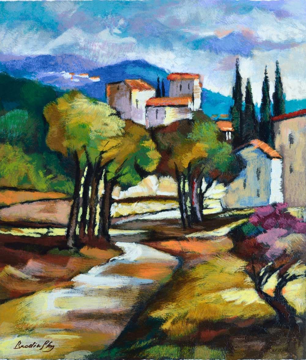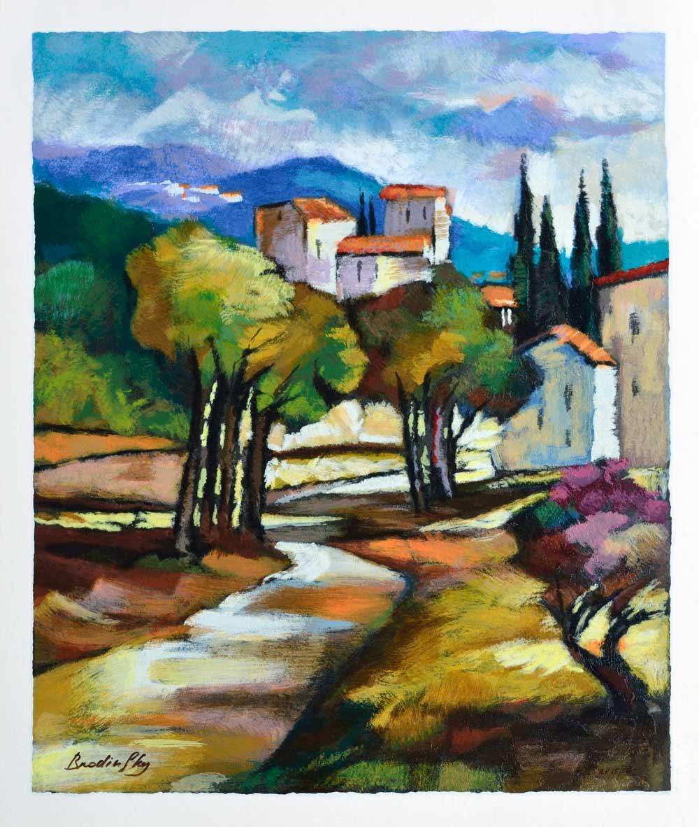 Artist: Slava Brodinsky - Title: A Pass in the Grove - Medium: Serigraph on Fine Art Paper - Signature: Hand-signed by the Artist - Limited Edition: AP 50 - Image Size: Approximately 22 Inches x 19.25 inches - Paper Size: Approximately 24 inches x 21.25 inches - Unframed - Details: This work comes with a Certificate of Authenticity - Biography:Slava Brodinsky Is A Master Of Painting The Light, Capturing The Rays Of The Sun In His Landscapes. His Work Is Textured And Has An Air Of Earthiness, Achieved By The Use Of Rough Brushes, Impasto And Mixing The Paint With Natural Elements Such As Sand.