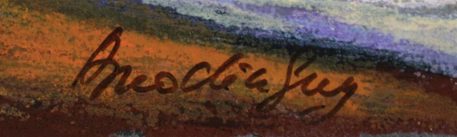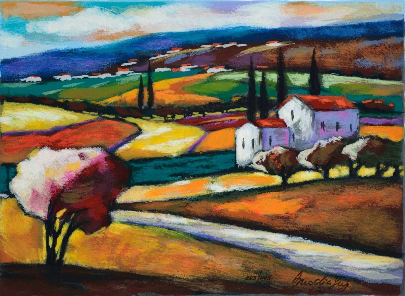 Artist: Slava Brodinsky - Title: Meadows - Medium: Serigraph on Fine Art Paper - Signature: Hand-signed by the Artist - Limited Edition: 495 - Image Size: Approximately 9 inches x 12.5 inches - Paper Size: Approximately 10 inches x 13.5 inches - Framed: Unframed - Details: This work comes with a Certificate of Authenticity - Biography:Slava Brodinsky Is A Master Of Painting The Light, Capturing The Rays Of The Sun In His Landscapes. His Work Is Textured And Has An Air Of Earthiness, Achieved By The Use Of Rough Brushes, Impasto And Mixing The Paint With Natural Elements Such As Sand.