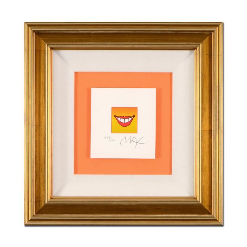 "Smile" is a limited edition lithograph on paper by Peter Max, numbered 477/500 and hand signed by the artist. This piece comes framed and includes Certificate of Authenticity. Measures approximately 14" x 13.5" (frame), 4.5" x 5" (image).