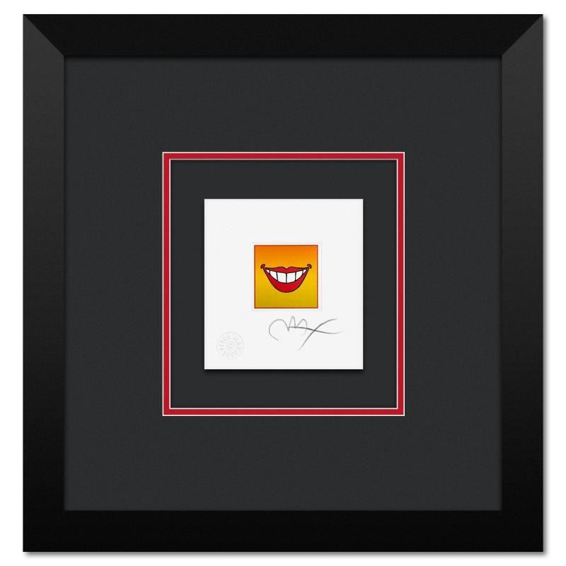 "Smile" is a limited edition lithograph on paper by Peter Max numbered and hand signed by the artist. This piece comes framed. Includes Certificate of Authenticity from Peter Max Studios. Measures approx. 13.5" x 14" (frame) 4.5" x 5" (image).