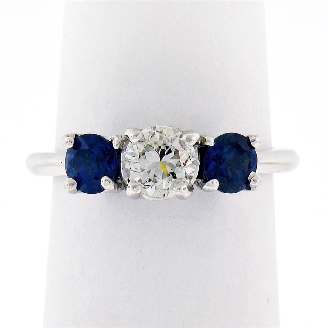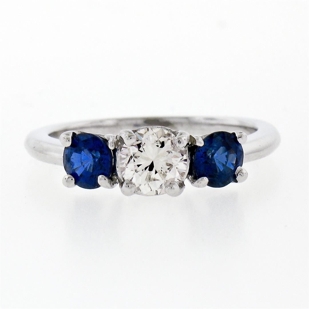 Solid Platinum 1.32 ctw Round Brilliant Prong Sapphire Diamond 3 Three Stone Rin