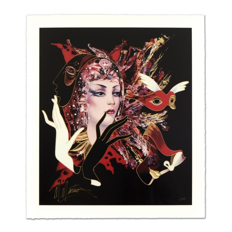"Sophisticated Glance" is a limited edition serigraph on deckle edge paper by Martiros Manoukian, numbered and hand signed by the artist. Includes Certificate of Authenticity. Measures approx. 28" x 32" (with border), 24" x 28" (image).