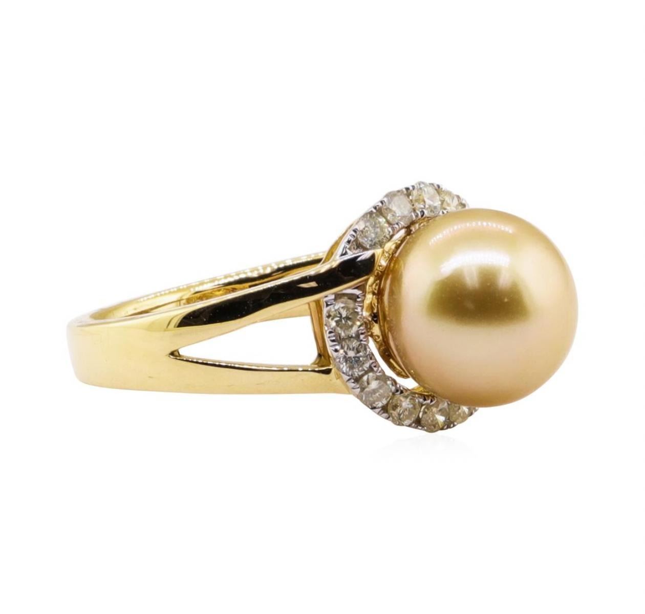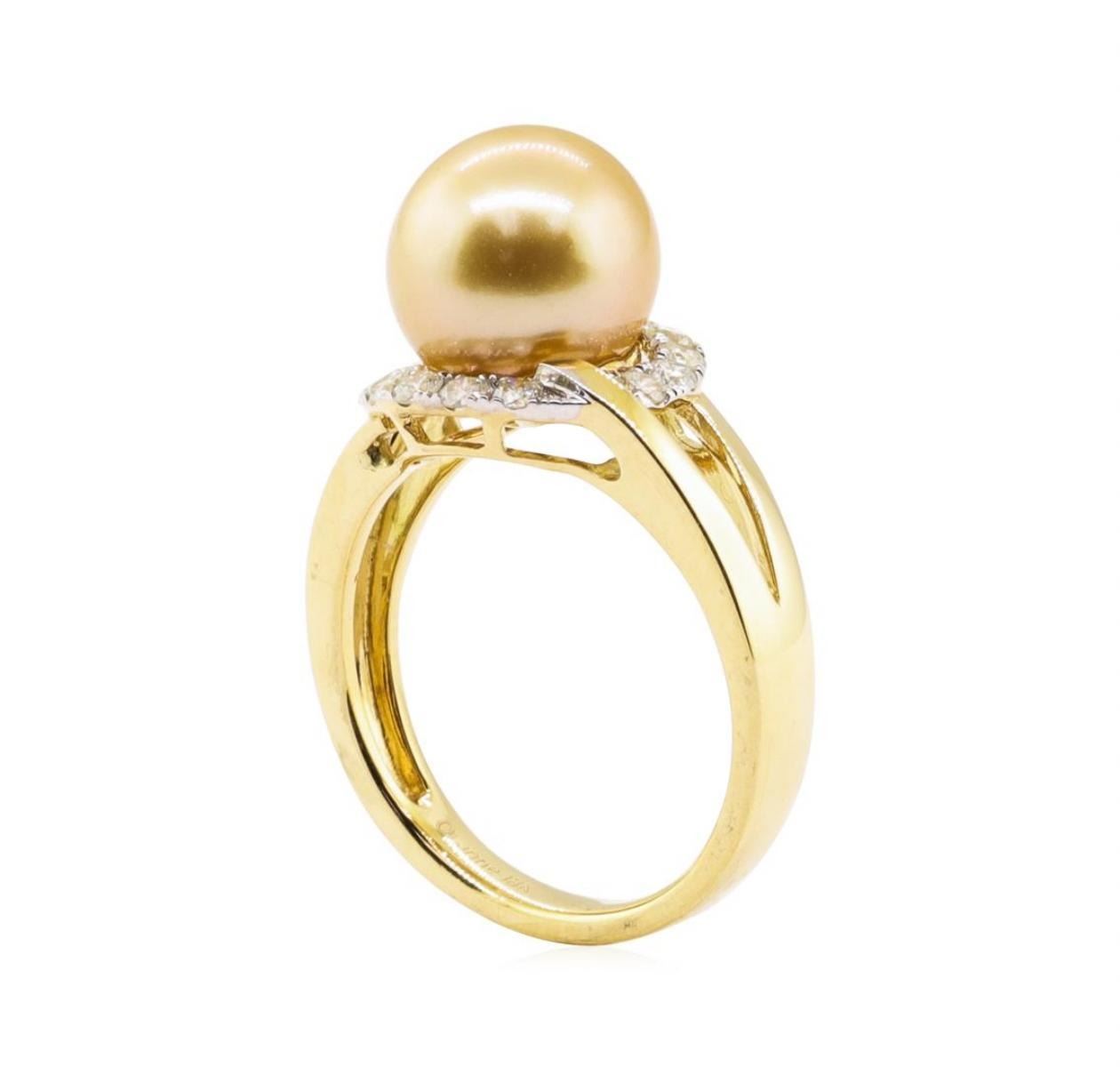 One South Sea Pearl and Diamond Ring - 18KT Yellow Gold. AIG certified. See Appraisal for more details. AIG Appraised.