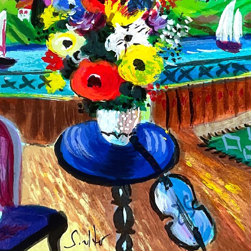 "Spanish Guitar" is a limited edition serigraph on paper by Shlomo Alter (1936-2021), numbered and hand signed by the artist. Includes Letter of Authenticity. Measures approx. 13" x 10" (border), 11" x 8.5" (image).