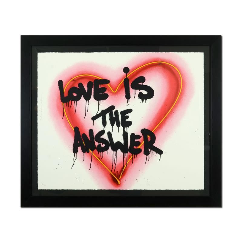 "Speak from The Heart (Love is the Answer)" is a limited edition silk screen print on paper by Mr Brainwash. The piece is hand signed by the artist and numbered PP 3/5. The piece comes custom framed and with a Letter of Authenticity. Measures approximately 45" x 53" (framed), 36" x 44" (image).