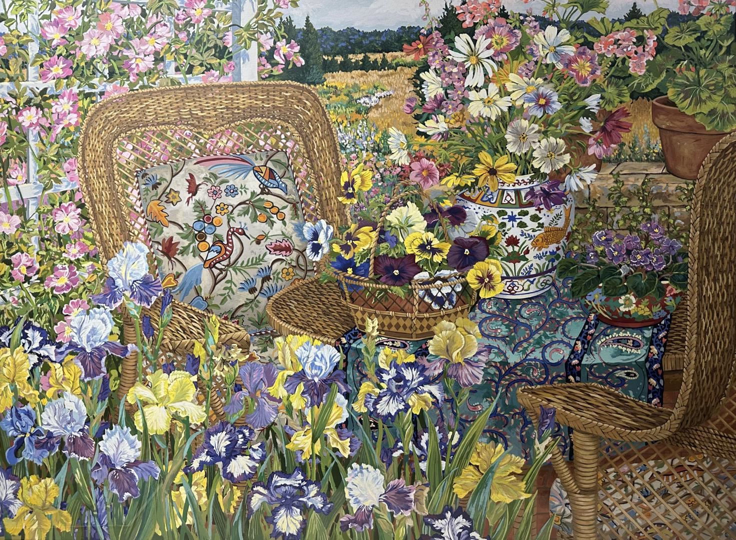 "Spring Iris" is a limited edition signed and numbered serigraph on paper by John Powell - This piece is 25' x 33".