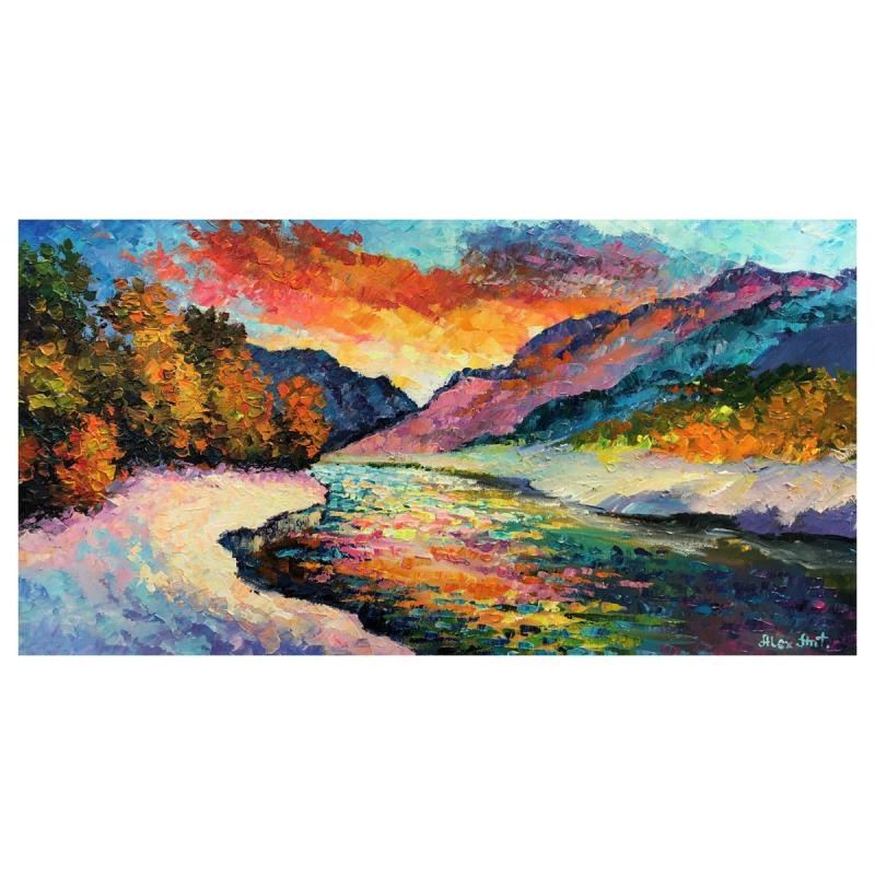 "Spring Is Here" is an original oil painting on stretched canvas by Alexander Antanenka. Hand signed by the artist, the piece comes with a letter of authenticity. Measures approximately 14" x 26" (image). There may be scuffs on the edges and corners which