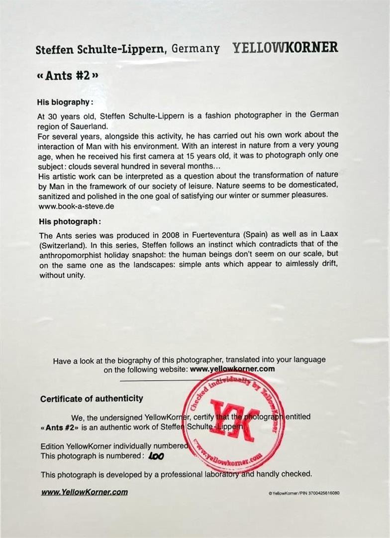 Steffen Schulte Lippern Germany Ant #2 YellowKorner Certified Photograph. Certificate of Authenticity from YellowKorner affixed to the back. Matted Dimensions 16"x20". Protected with Clear Mylar Sleeve.