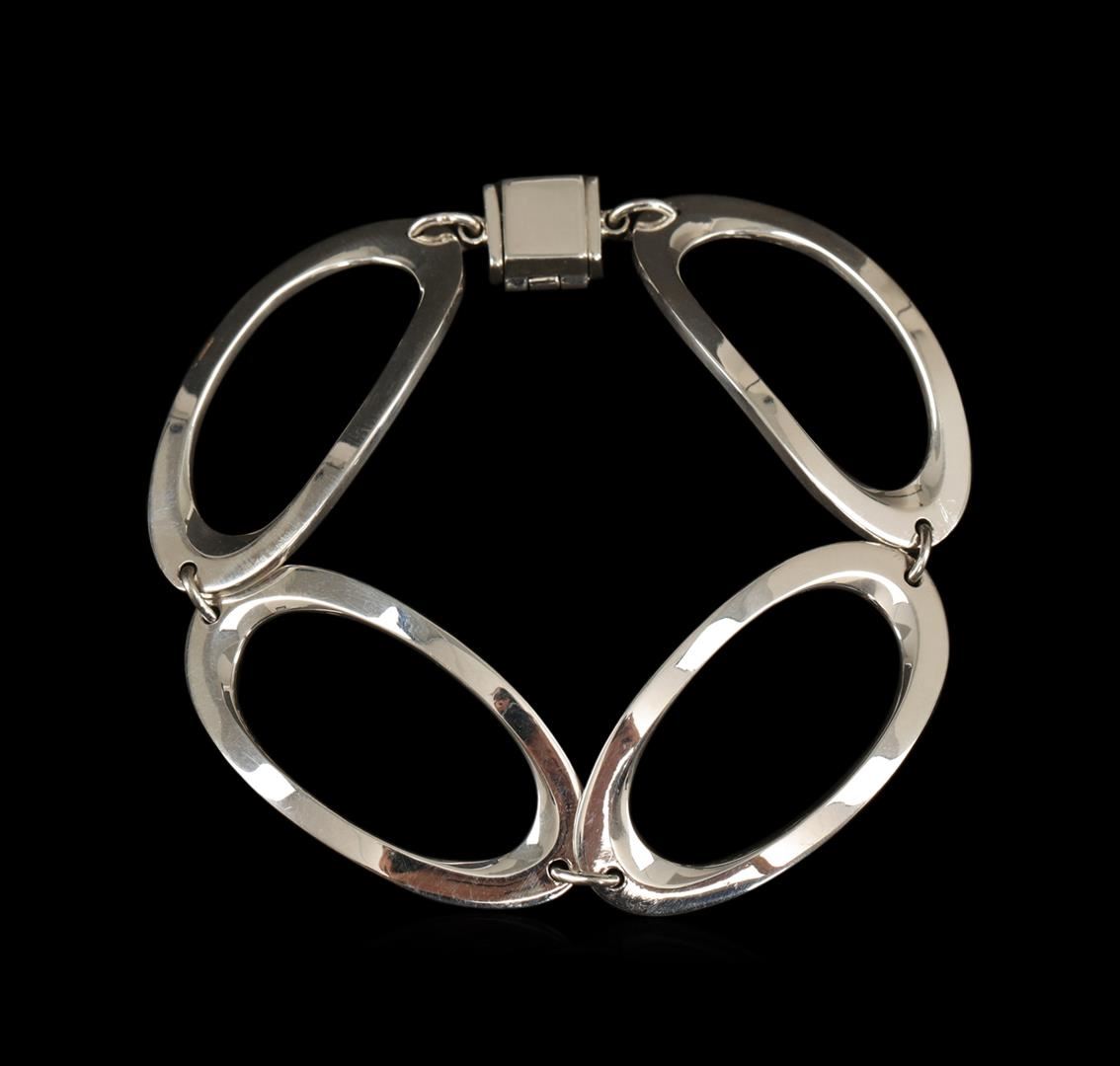 One of a kind high fashion sterling silver Bracelet weighing 30.3 grams. This sterling silver promises a lasting shine.