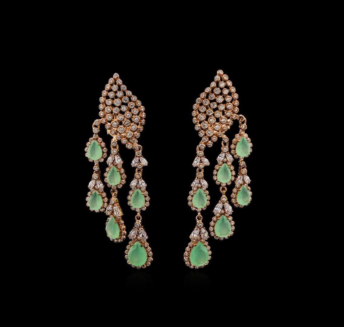 One of a kind high fashion sterling silver Earrings weighing 19.9 grams. Containing: Green Crystal, Cubic Zirconia. This sterling silver promises a lasting shine.