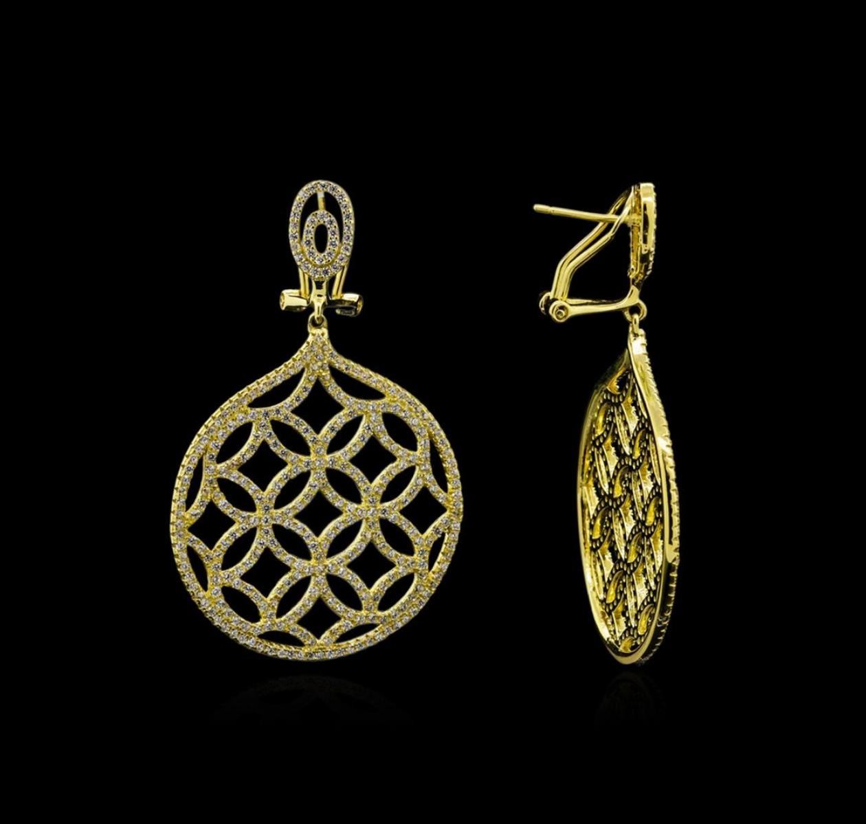 One of a kind high fashion sterling silver Earrings weighing 13.5 grams. Containing: Cubic Zirconia. This sterling silver promises a lasting shine.