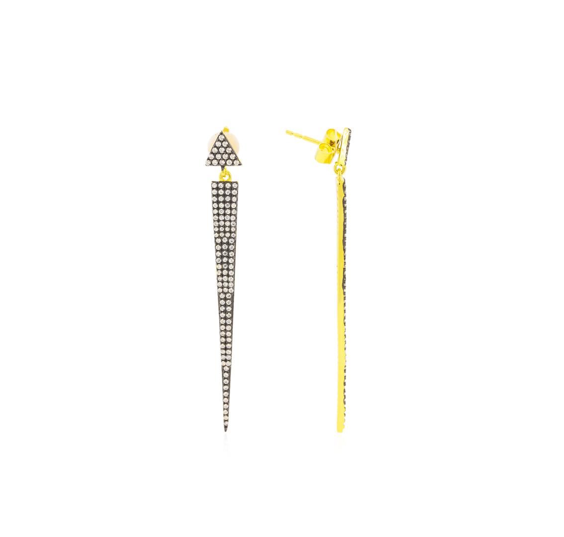 One of a kind high fashion sterling silver Earrings weighing 5.4 grams. Containing: Cubic Zirconia. This sterling silver promises a lasting shine.