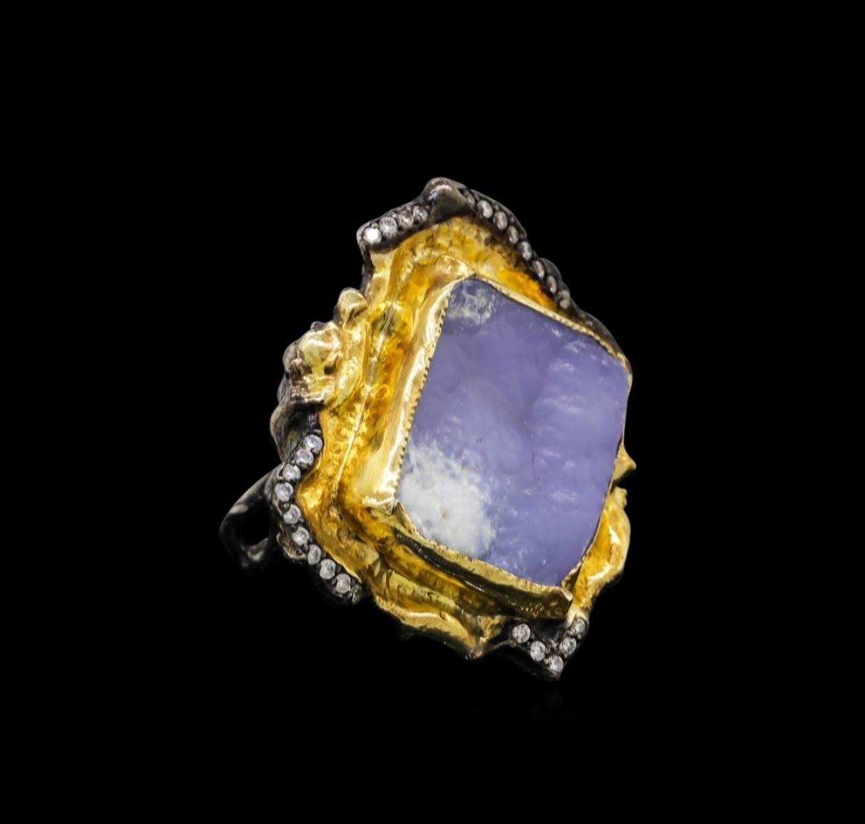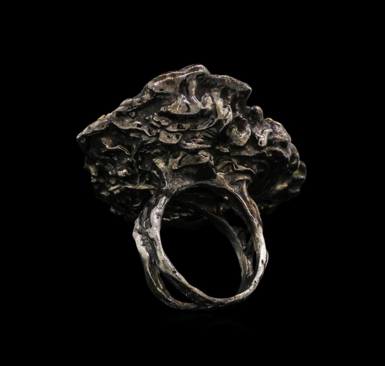 One of a kind high fashion sterling silver Ring weighing 35.6 grams. Black Antique texture. Containing: Blue Lace Agate, White Crystal. This sterling silver promises a lasting shine.