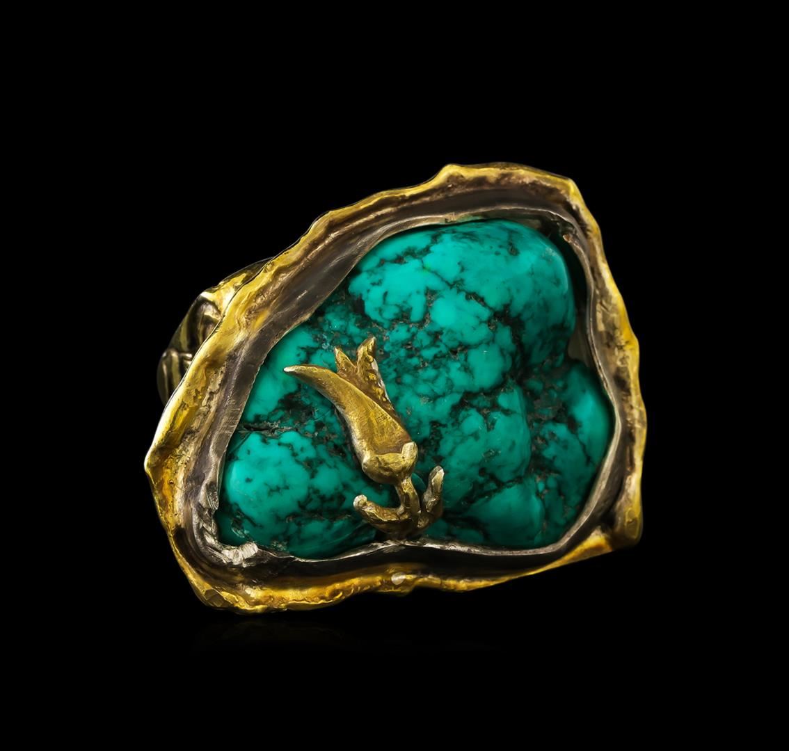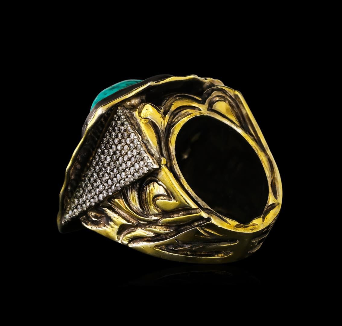One of a kind high fashion sterling silver Ring weighing 38.5 grams. Containing: Imitation Turquoise, White Crystal. This sterling silver promises a lasting shine.