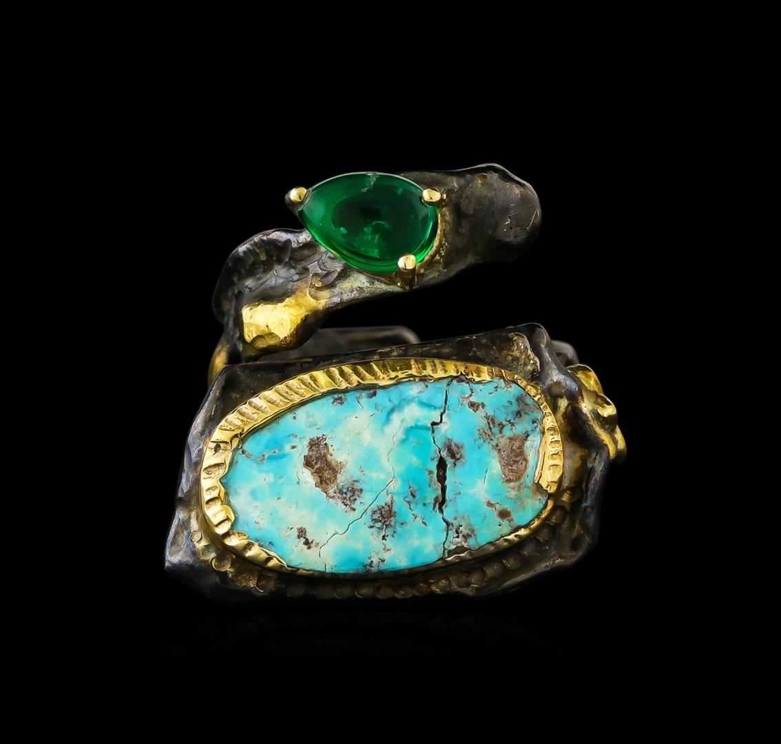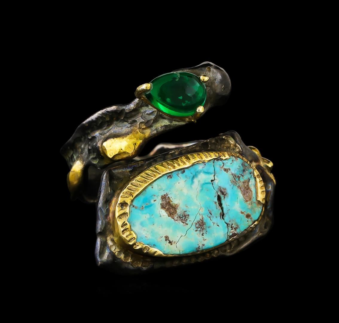 One of a kind high fashion sterling silver Ring weighing 12 grams. Containing: Turquoise, Green Crystal. This sterling silver promises a lasting shine.