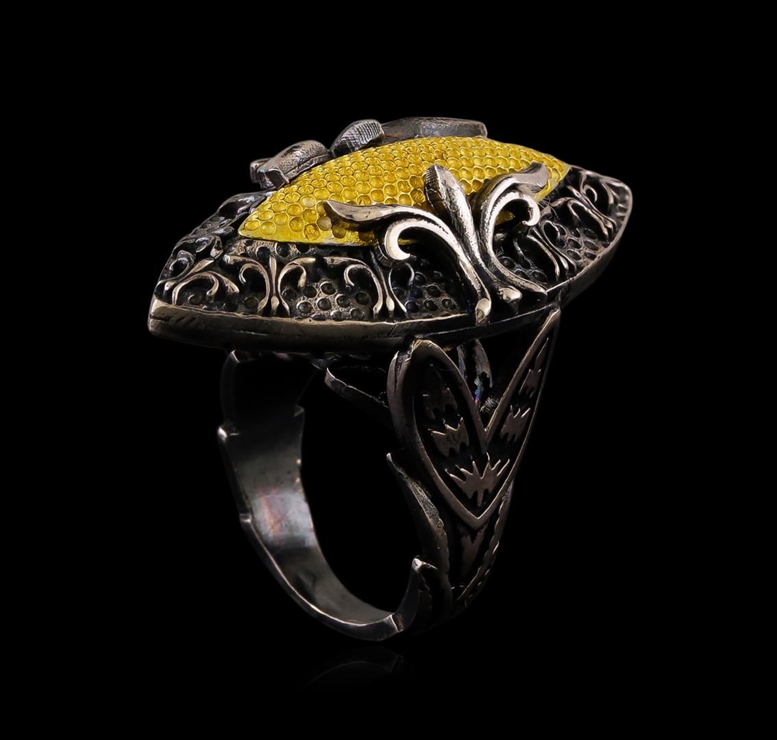 One of a kind high fashion sterling silver Ring weighing 16.9 grams. This sterling silver promises a lasting shine.
