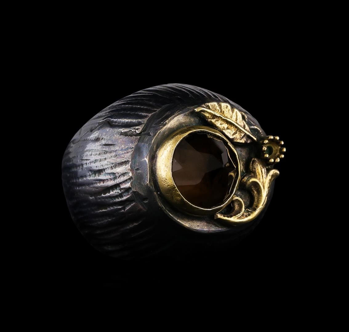 One of a kind high fashion sterling silver Ring weighing 15 grams. Black Antique texture. Containing: Smoky Quartz. This sterling silver promises a lasting shine.