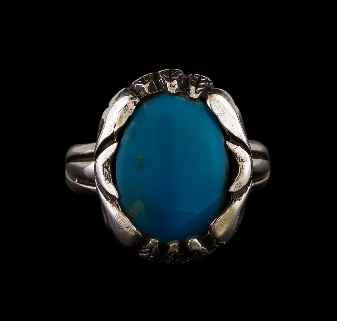 One of a kind high fashion sterling silver Ring weighing 11 grams. Containing: Created Turquoise. This sterling silver promises a lasting shine.