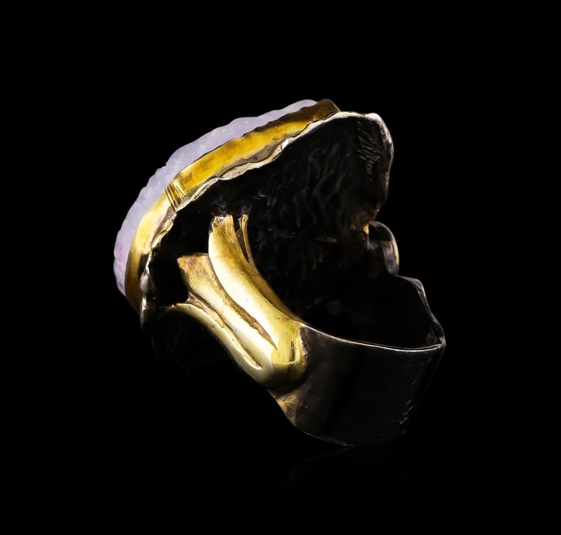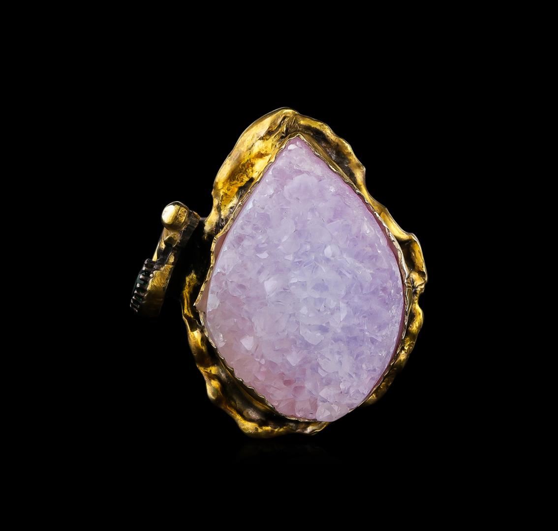 One of a kind high fashion sterling silver Ring weighing 18.2 grams. Black Antique texture. Containing: Crystal White Agate, Green Crystal. This sterling silver promises a lasting shine.