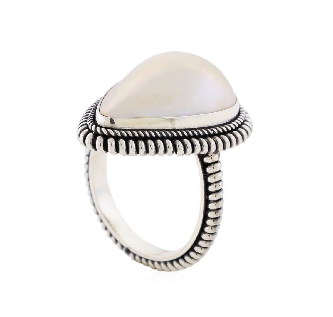 One of a kind high fashion sterling silver Ring weighing 5.5 grams. Containing: Mabe Pearl. This sterling silver promises a lasting shine.