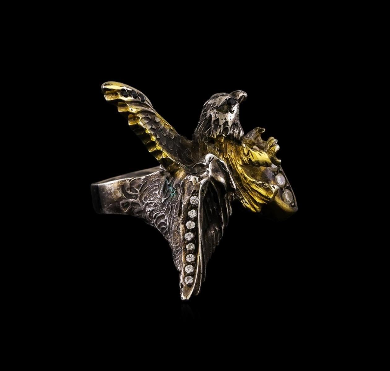 One of a kind high fashion sterling silver Ring weighing 25.2 grams. Containing: White Crystal, Black Crystal. This sterling silver promises a lasting shine.
