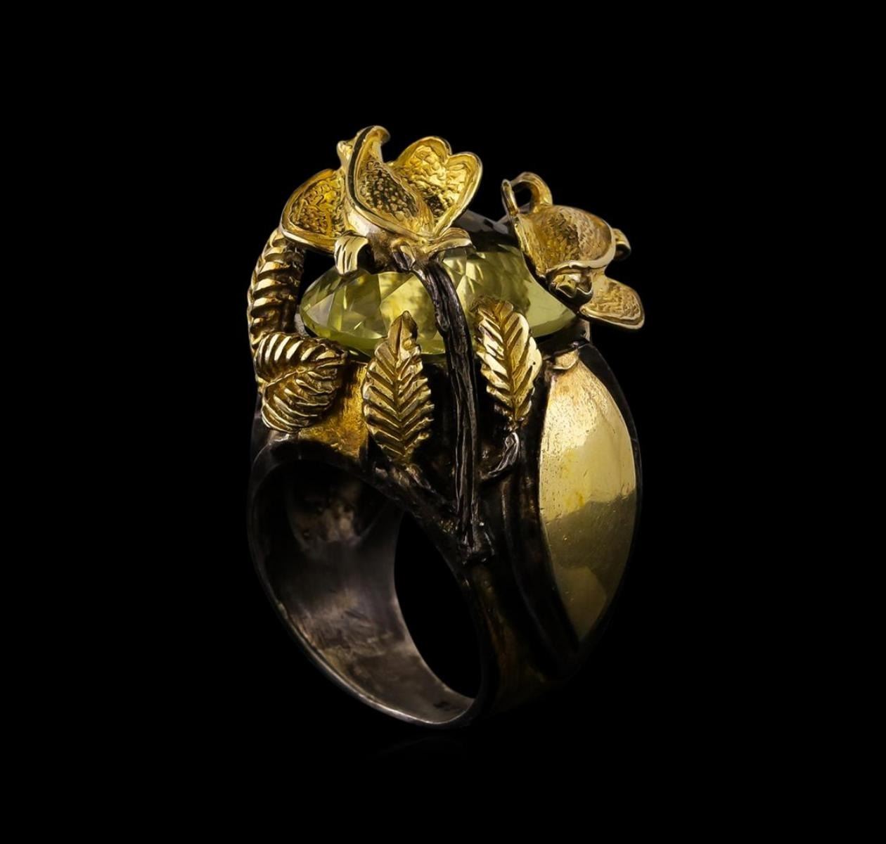 One of a kind high fashion sterling silver Ring weighing 32.7 grams. Containing: Lemon Quartz. This sterling silver promises a lasting shine.