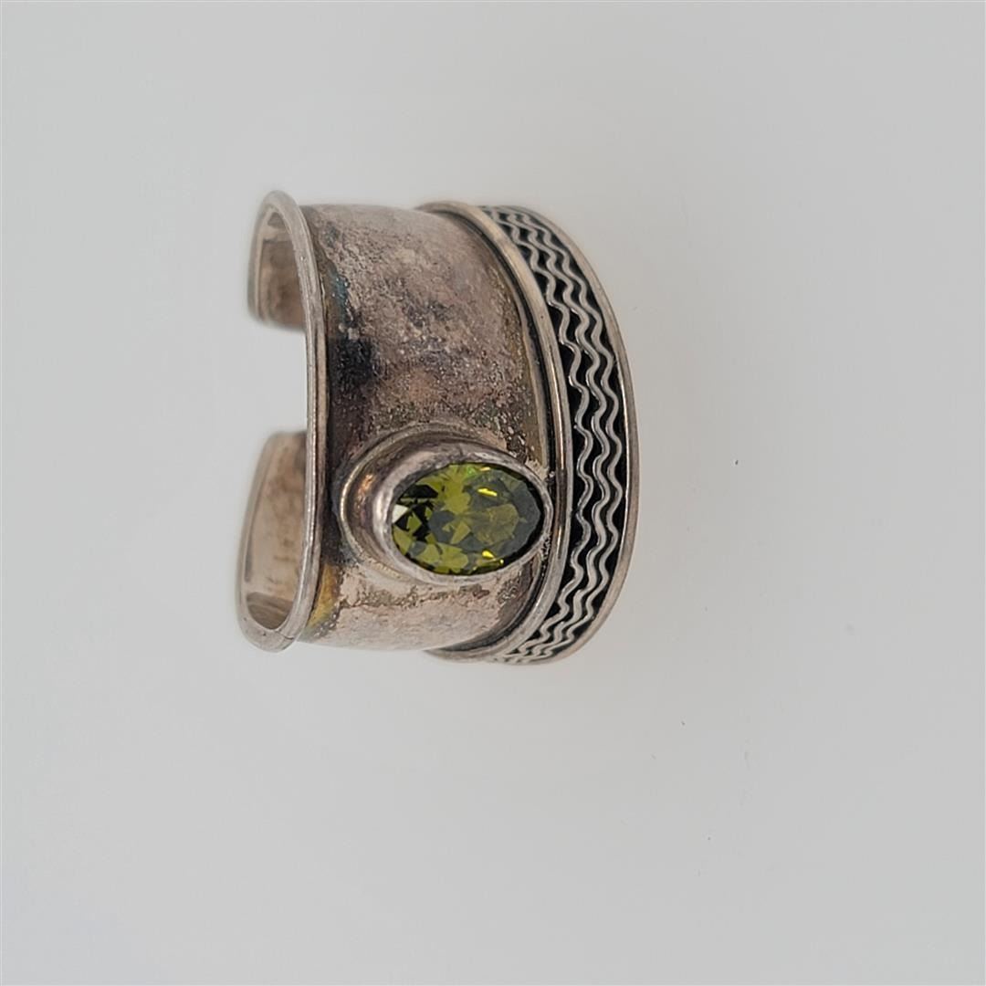 One Sterling Silver Ring. The ring size is adjustable. Contains semiprecious stones.