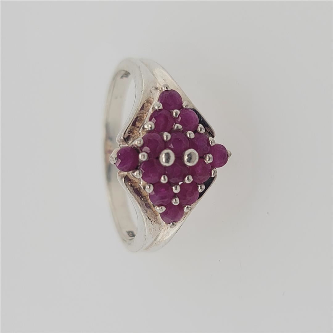 One Sterling Silver Ring. The ring size is 10. Contains semiprecious stones.