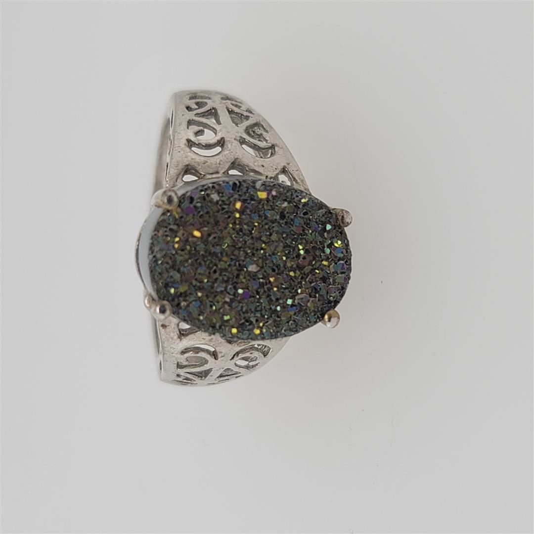 One Sterling Silver Ring. The ring size is 10. Contains semiprecious stones.