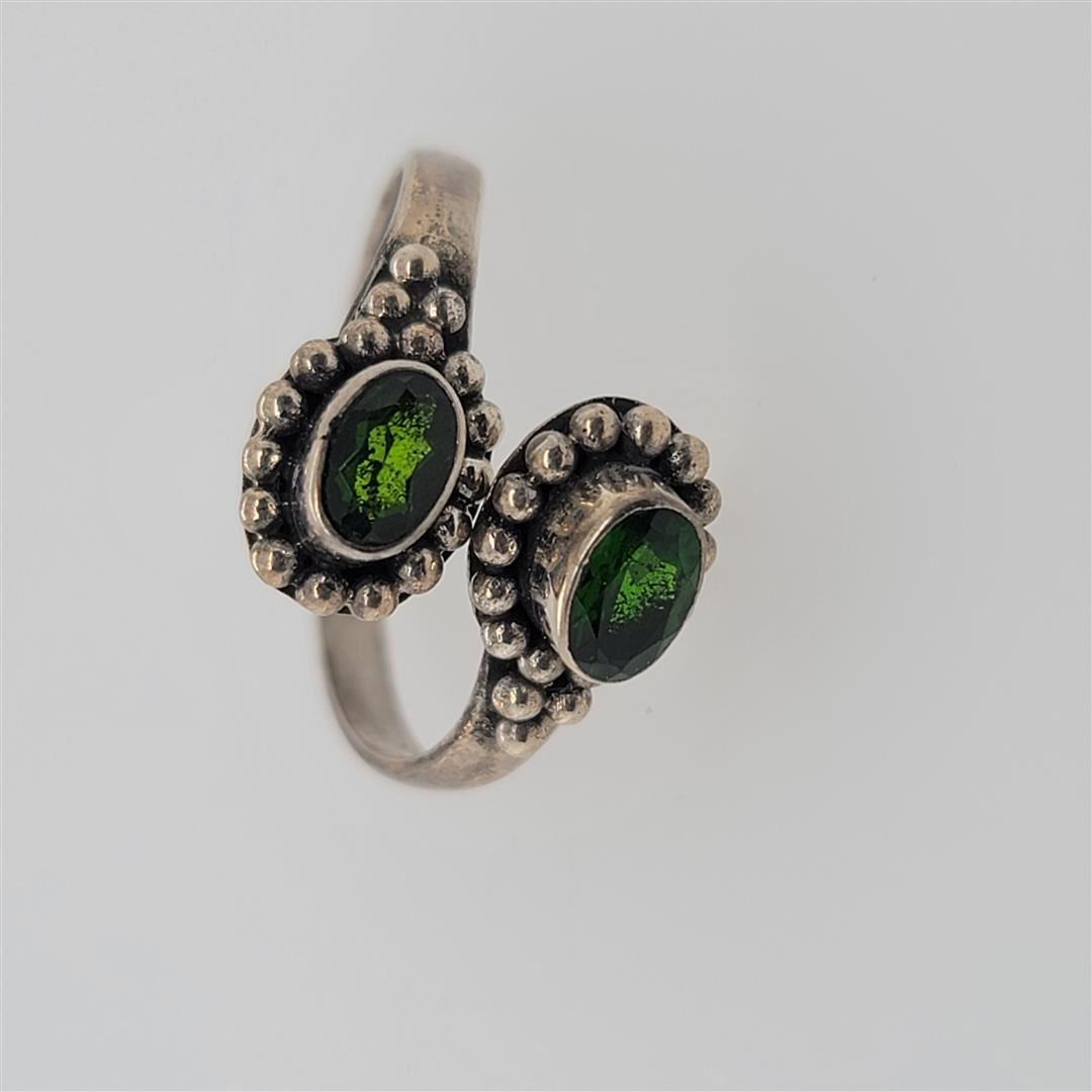 One Sterling Silver Ring. The ring size is adjustable. Contains semiprecious stones.