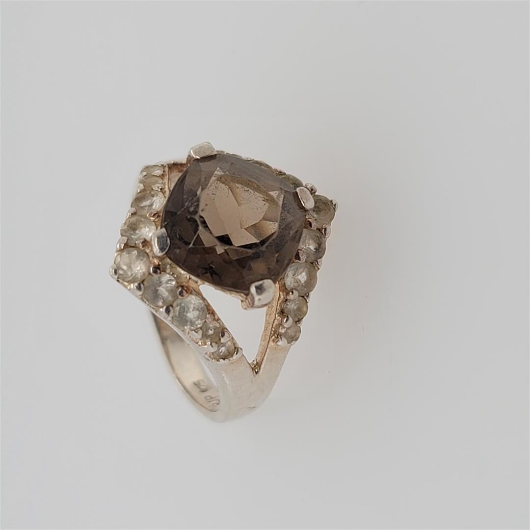 One Sterling Silver Ring. The ring size is 8. Contains semiprecious stones.