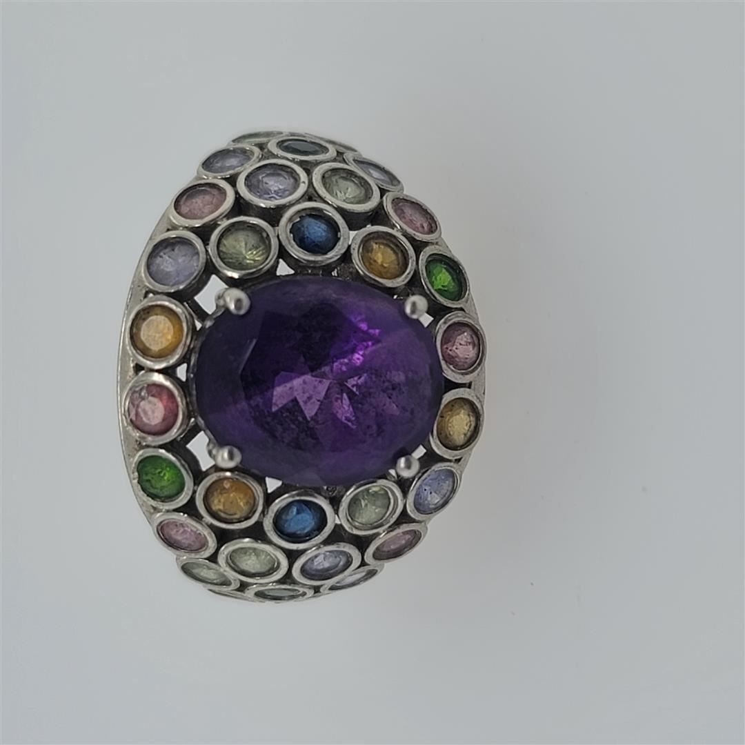 One Sterling Silver Ring. The ring size is 9.25. Contains semiprecious stones.