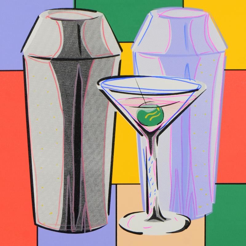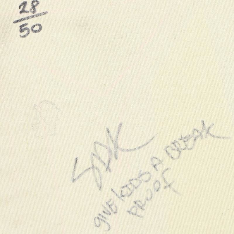 "Martini" is a hand embellished limited edition hand pulled silkscreen on canvas by Andy Warhol protege Steve Kaufman (1960-2010). This piece is numbered 28/50 and hand signed inverso. Includes letter of authenticity. Measures approx. 24" x 24" (image).