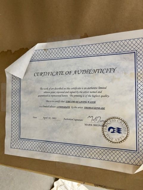 This is 32.75x26.5" framed 2003 lithograph by Thomas Kinkade, signed & numbered, with COA. Frame shows some wear but looks good.#.294/570AP, with COA